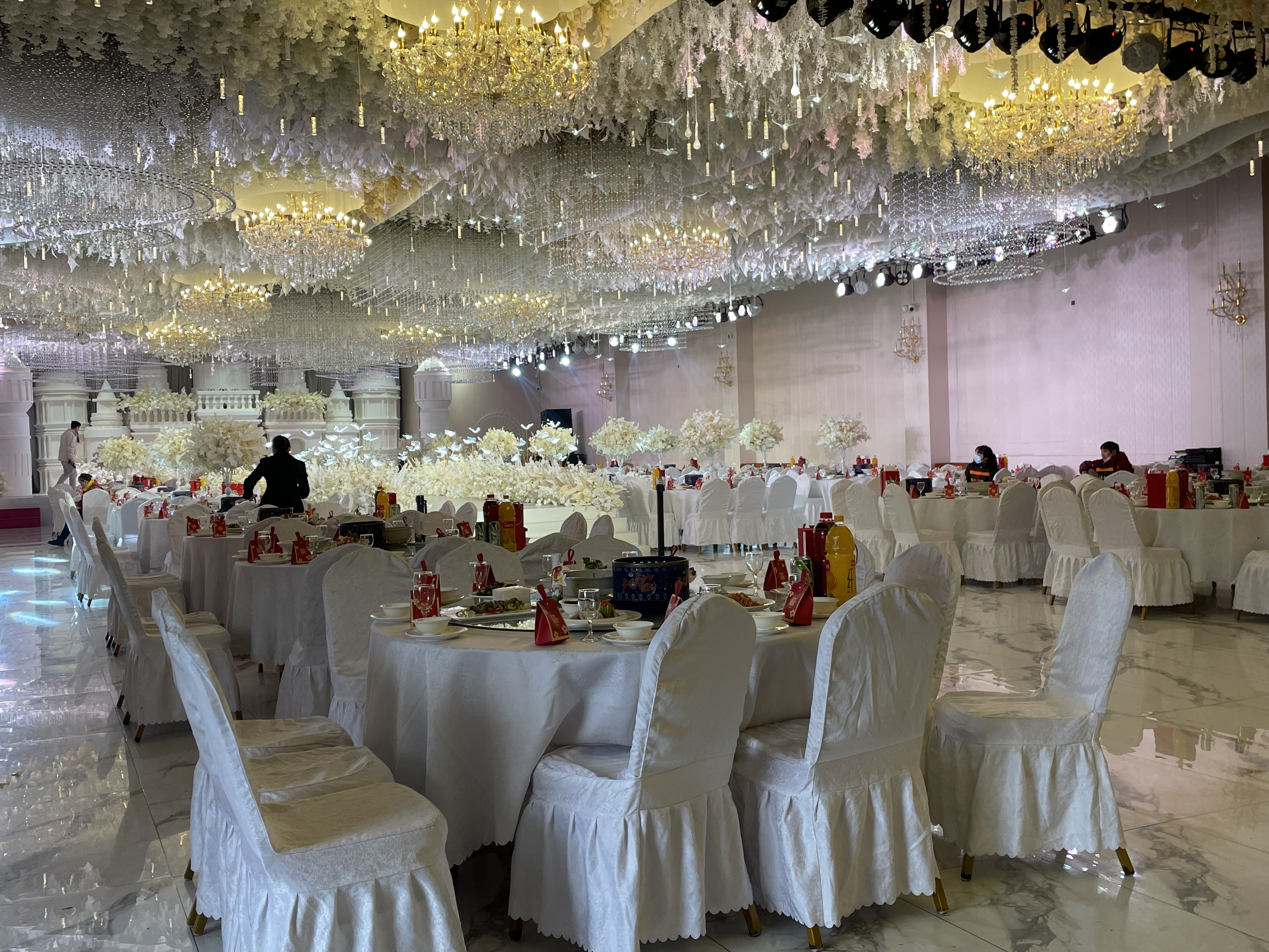整個婚禮場地的檔次跟新人要花多少錢有絕對關系;首先、婚宴用餐是花費大頭,以成都婚宴平均價格為例,1600元/桌,30桌要花費近5萬元,如果是戶外婚禮還有單獨的場地費,所以新人要先做好自己的預算,問好價格再下手。
