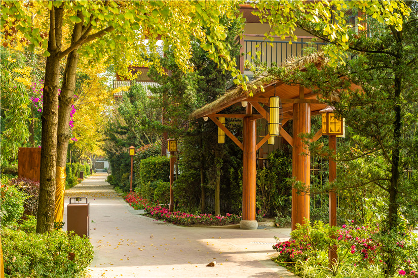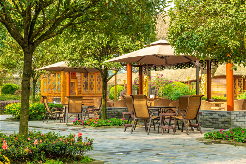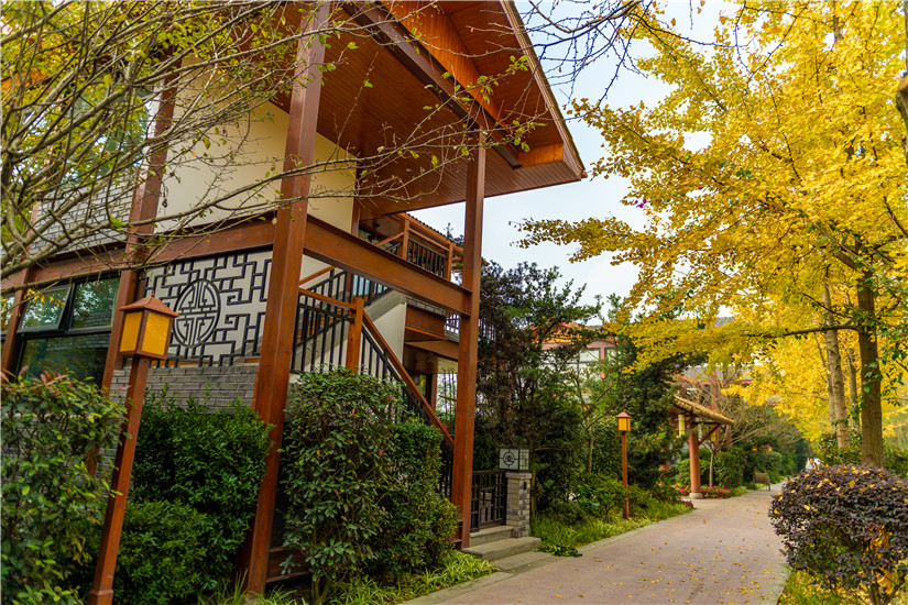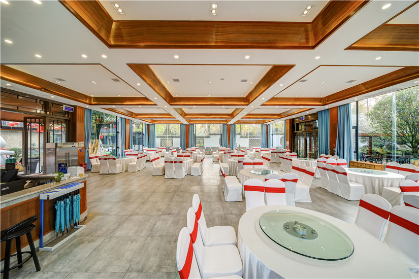 酒店坐落于成都市郫都區田園生態衛星城,與川菜博物館咫尺相鄰,占地約20萬平方,是一家以中式園林建筑風格設計建造的大型綜合體度假酒店。青磚、白墻、黛瓦組成的建筑高低錯落,每個角落古香古色,真正體現出中國古建筑的一路一變化,一角一風景。酒店設有貴賓樓、別墅區、中餐區、宴會區、火鍋區、柴火雞區、室內燒烤區、戶外燒烤區、兒童游樂區、團建區、茶園涼亭區、酒吧區、休閑區、湖景區等建筑,經營項目及住宿、中餐、商務宴請、宴席、會議、團建、特色火鍋、養生湯鍋、戶外自助燒烤、室內烤全羊、室內柴火雞、生態湖釣魚等為一體。讓您在商務洽談、個人宴請、企業會議、休閑娛樂、家庭度假等有一種不同的意境體驗!建筑環繞園林內約33000平方生態湖的周圍,所有建筑掩映林間,形成多樣的假山、石雕、漏窗、影壁點綴期中,整體風格樸素高雅。在這里不僅可以領略傳統建筑的藝術之美,更讓人有一種歸返林山的意境。正如古代詩人陶淵明在《歸園田居》中所描述的那樣:戶庭無塵雜,虛室有余閑。久在樊籠里,復得反自然。